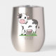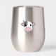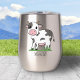 A cute cow on grass printed on a thermal tumbler with a customisable text. You can use it at home, at the office, or simple made a gift to a friend who loves farm or Kawaii animals! A cute cow face is printed on the back!