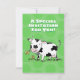 Cute cow in green field cartoon illustration invitation