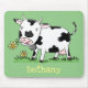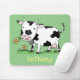 Cute cow in green field cartoon illustration mouse mat