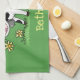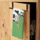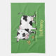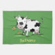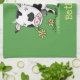 Cute cow in green field cartoon illustration tea towel