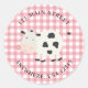 Holy Cow! Cute cow, pink daisy and cow print birthday return address labels.