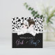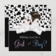 Adorable baby boy and girl black cow gender reveal shower invitation. This elegant cow print gender reveal baby shower invitation is easily customised for your event by adding your event details, font style, font size & colour, and wording. Please note - all of the stickers, cards and invitation designs you will find on Zazzle are printed graphics with no actual jewels, bows, raised, embossed, or added parts or pieces.