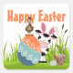 Cute Cow, Rooster and Colourful Eggs Farm Easter Square Sticker