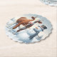 Cute cow & snowman in the winter field paper coaster