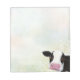 Cow notepad for animal and nature lovers. Design features a painting of a black and white cow against a background of pastel colours and swirly vine details. Artwork copyright © Lisa Marie Robinson. All rights reserved.