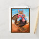 Cute cowboy cat riding turkey postcard