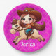 Cute Cowgirl and Horse Western Pink Paper Plate