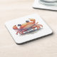 A hard plastic coaster with a watercolor illustration of a very cute crab.
