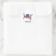 Add your name or other message to this sticker to create a personalised label with a beachy theme. Features an illustration of a red cartoon crab wearing a blue bucket style beach hat with your text in blue lettering against a white background.