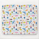 This craft-themed mouse pad has everything from scissors and glue guns to measuring tapes, paintbrushes, pliers, thread, and glitter. Don't forget the googly eyes, pom-poms, buttons, and safety pins, too! Illustrated with ink and coloured pencil.