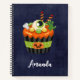 A personalised spiral notebook with a Halloween cupcake with a big eyeball and other assorted spooky elements.
