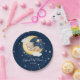 Cute Crescent Navy Moon Teddy Bear Baby Shower Paper Plate