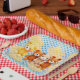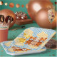 Blue, yellow and brown boy's baby shower paper plates with cute crocheted bears.
