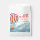Baby showers favor bag features cute cub on a hot air ballon flying over the clouds.