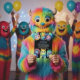 Key features of this theme include funny watercolor street monsters bursting with personality and charm. These vivid characters are sure to captivate young imaginations and set the stage for a vibrant celebration. With a unique blend of alien and monster elements, the cartoon-style illustrations add a quirky twist, making it ideal for a kids' Halloween party or any special milestone event.