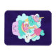 A flexible magnet with a cute illustration featuring a cupcake and ice cream smiling with joy. A rainbow and hearts surround the drawing. A cute fluffy cloud is also smiling with happiness. The cupcake and ice cream have a trendy unicorn horn on top. Cute and adorable design full of joy.
