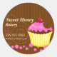 © 2010 Socialite Designs. Whimsical cupcake, with a bite taken out of, swirls and a striped brown background design stickers.