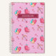 Cute and colourful pattern spiral notebook with personalised name. Perfect for diary, life journal, sketchbook, recipe book or just taking notes in class. Sweet Valentine's Day pattern with kawaii love and heart. Great for kids and teen girls. Make a great gift for back to school celebration.