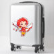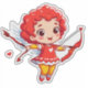 Vibrant cartoon cupid with wings, a red dress, and a bow flies across a heart-filled red backdrop. Perfect for Valentine, romance, and family-themed projects.