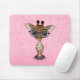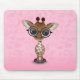 Cute Curious Baby Giraffe Wearing Glasses on Pink Mouse Mat