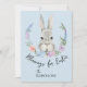 Blessings for Easter Quote Cute Curious Easter Rabbit in Floral Wreath Blue Holiday & Seasonal Easter Cards.