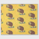 Cute curious funny brown owl cartoon illustration wrapping paper