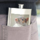 The product is a good size and came exactly as it was pictured. The lid is not attached to the flask, which could be dangerous on drunken nights... The print came out surprisingly well and looks very sharp. Would definitely recommend.