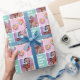 Custom photo gift wrap is a fun way to creatively display your pictures! This personalized set includes three sheets, perfect for holidays, birthdays, Christmas, and other special occasions. The pattern showcases three of your favorite photos in a stylish grid with rounded squares, and simple typography. You can customize the text with your own greeting, phrase or slang. This modern retro style is perfect for photos of kids, teenagers, friends, family and pets, or include decorative images to enhance your visual theme. Colors: green and white — or change the color with the design tool. Available with a matte or glossy finish.