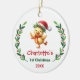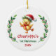 Celebrate a precious milestone with this Personalized Baby's First Christmas Ceramic Ornament, featuring a happy baby duck wearing a festive Santa hat, surrounded by delicate green and red winter foliage . This charming design is printed on both sides for a beautifully finished and heartwarming keepsake. Customize the baby's name and year to create a meaningful holiday decoration that families will treasure for years to come. If you wish, the text can be further personalized by changing the colors, fonts and 1st Christmas message. A perfect Christmas gift for newborns, infants, new parents and grandparents. This cute and modern ornament blends timeless holiday colors with an adorable illustrated baby animal, making it a lovely addition to any Christmas tree. A perfect way to remember your little one's very first Christmas season.