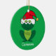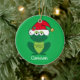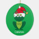 Cute Christmas frog in an adorable red Santa Claus hat with jingle bells and mistletoe on a cool green holiday ornament. This funny kids holiday animal gift featuring a smiling green froggie animal makes me happy and full of Christmas cheer. Personalise with a child's name for a fun gift.