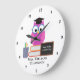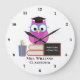 Cute Custom Classroom Pink Owl Teacher Monogram Large Clock