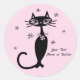 Cute Custom Colour/Text Retro Mod Black Cat Pink Classic Round Sticker