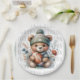 Custom paper plates have a football theme with a feminine touch. Modern design with flowers and a cute bear holding a football. Customise the text on the plates with your desired name or phrase. Great for football fans and those having a football theme party. Use the template to create your own custom paper plates.