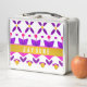 This cute girly lunch box with flowers and hearts is both fresh and fun. Filled with pinks and purples and some gold. Perfect for tweens or younger and the area that can be customise with their name can also be changed to anything else if you are not comfortable showing your childs name. Bring a little playfulness to lunch times.
