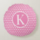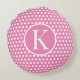 Cute Custom initial letter Polka Dot Pink Round Cushion