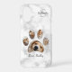 Cute custom photo collage design with your name and monogram or initial featuring your pet's name along with five of your pet's photos in a paw print outlined in black over a white marble background. Tip: You can change the text and paw print outline colours to your favourite.