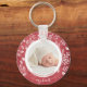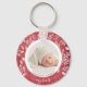 Round button keychain features your favourite photo surrounded with white leaves, berries and dots on a textured red background. TIP: Upload a high resolution photo that features your baby in the middle - you can crop to a square, too. Keychains make memorable gifts for family, grandparents and friends or create for yourself.