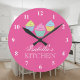 Cute custom pink cupcake kitchen wall clock. Alos nice for girls bedroom or baby nursery.