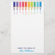 Beautiful line of coloured pencils leaving a pretty colourful squiggle streaked across the page in cute rainbow colours to decorate the top of this personalised stationary paper for an elementary school or art teacher. Customise with your name or other text at the bottom of the notepad in purple and blue.