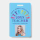 Cute Custom School Teacher Rainbow Name Blue ID Badge