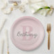 Cute Customisable Pink Monogram & Your Name Script Paper Plate