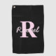Cute Customizable Monogram | Light Pink & Black Golf Towel