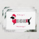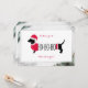 Fun budget Flat Christmas Greeting Card with cute graphic dachshund in Santa hat & quirky text, all framed in festive faux silver glitter edging. Reverse side decorative font typography can be easily personalized with your own name & greeting. A light-hearted holiday card to send cheers to friends & family for the holiday season.