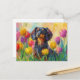 This charming painting features an adorable dachshund sitting among a vibrant field of colourful tulips, capturing a playful and heartwarming scene. The rich colours and expressive brushstrokes make it a perfect piece for dog lovers and spring-themed decor.