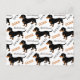 Cute little Doxie dog pattern. Black and Tan Smooth Coated Dachshund with the words "Doxie, Dachshund and Dackel (German for Dachshund).