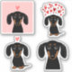 An assortment of cute Dachshund stickers with hearts and “Be Mine.” Sweet dog stickers for Valentine’s Day or just for fun. These funny wiener dog vinyl decals are waterproof and scratch resistant. Great for water bottles, notebooks, laptop computers, and any smooth surface indoor or outdoor. Visit Jenn’s Doodle World for even more fun products featuring this cute cartoon Doxie design.