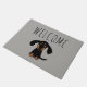 Doxie Lover's Welcome Mat. This cute Dachshund welcome mat can be personalised with your name or slogan. Funny black and tan longhaired Dachshund puppy with eyes looking up. Makes a wonderful gift for a housewarming party, newlyweds, holidays and most any occasion. Visit Jenn's Doodle World for even more wiener dog doormats and Dachsie themed home decor.