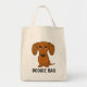 An adorable smooth coated red Dachshund puppy looking up. The text "Doggie Bag" can be personalised with your own name or slogan. A cute wiener dog lover’s tote bag, great for shopping for groceries or pet supplies. This fun weenie dog cartoon reusable bag makes a perfect gift for anyone who loves a weenie dog. Visit Jenn’s Doodle World for more Doxie gifts.