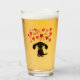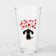 Enjoy a pint of your favourite cold beverage out of this cute 16 oz drinking glass. Longhaired black and tan Dachshund cartoon dog with pink Valentine's Day hearts. Makes a lovely gift for wiener dog lovers. Visit Jenn's Doodle World for more custom drinkware and cute Doxie themed home decor.