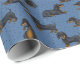 Cute Dachshunds Pattern with Blue Background Wrapping Paper